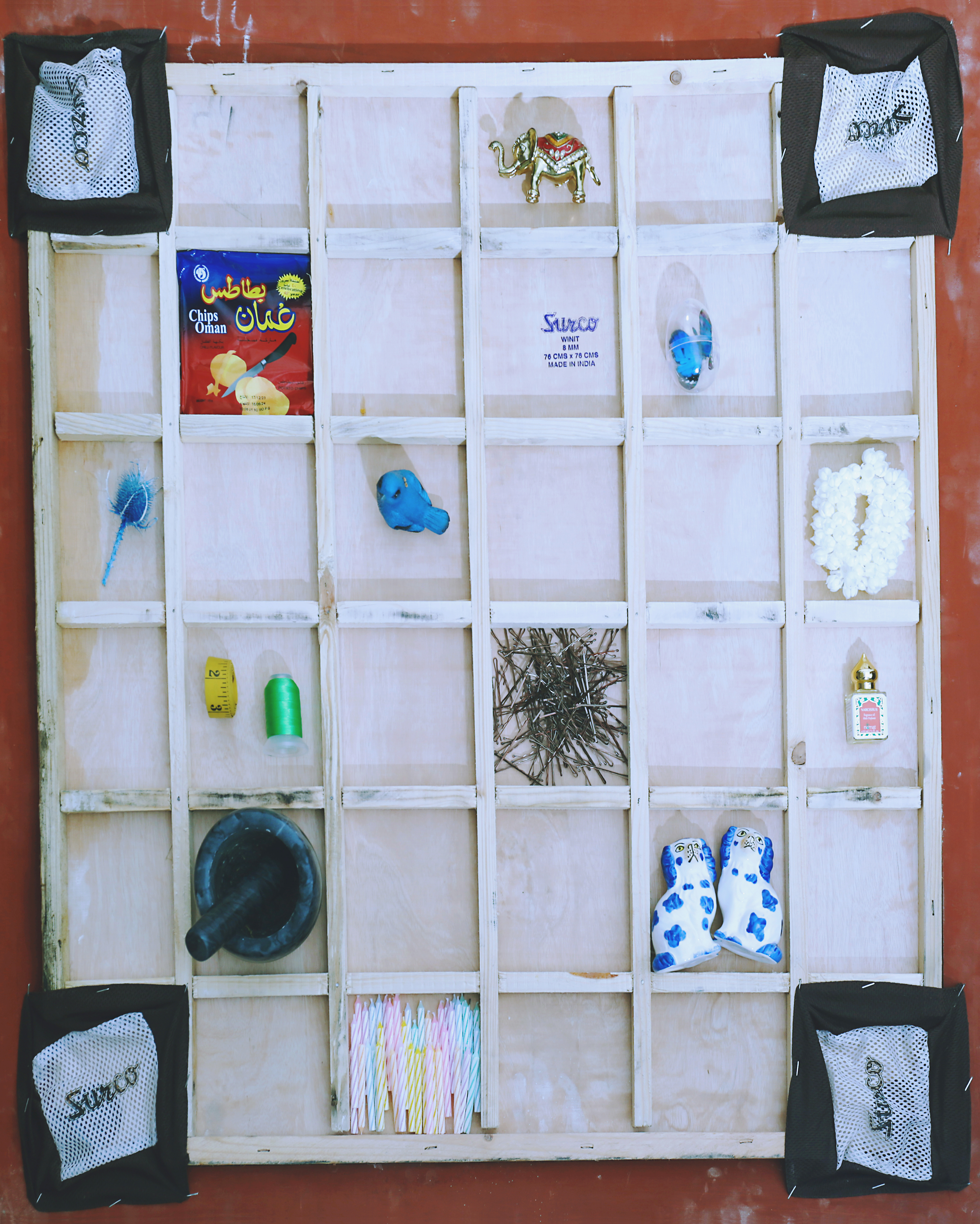 Nasrah Omar uses photography and other mediums to intertwine advocacy, care, and cultural visibility in layered stories of migration. She maintains that borders and status hierarchies are social constructs that perpetuate human divisions through manipulation. Through her work, Omar shows that journeying is a shared human experience that leaves open the possibility for understanding and empathy. “Rooted in my lived experience as a first-generation immigrant with ties to India and a third-culture upbringing in Oman and America,” she says her work “draws on advocacy, ancestral memory, diasporic journeys, and collective imagination to build counter-lexicons… Against institutional framings that reduce immigrant life to statistics or burdens, the collaged tableaux and allegorical compositions function as counter-archives: they re-articulate grief, longing, and alienation into portals of tenderness, healing, and re-enchantment.” Her photograph Migration Repositoryshows a wooden construction grid of 36 receptacles. Some are empty and others contain objects ranging from candles and hair pins to a bag of chips from Oman and an elephant figurine. It shows what has been collected on a journey so far, leaving the empty spaces for materials yet to be collected when traversing future borders. ”By reimagining these boundaries as porous and dismantlable,” Omar says, “the work insists that another world is possible, one where histories, geographies, and futures are held together through solidarity and tenderness rather than control… By dislocating narrative away from flattening, the work resists the simplicity with which media and political actors often script immigrant lives, opening instead to multiplicity, complexity, and possibility.”