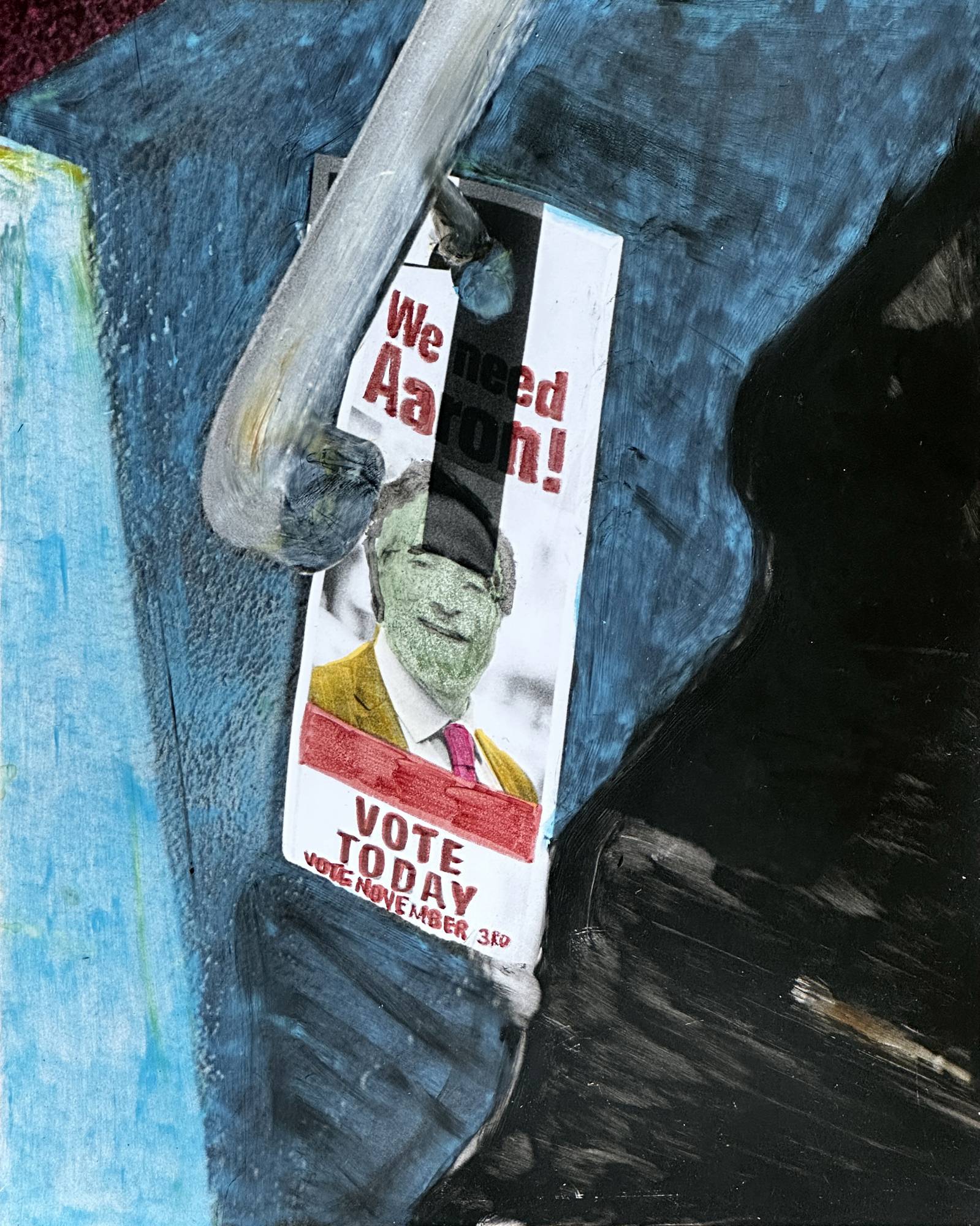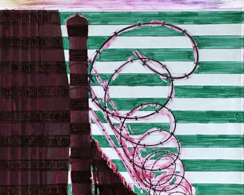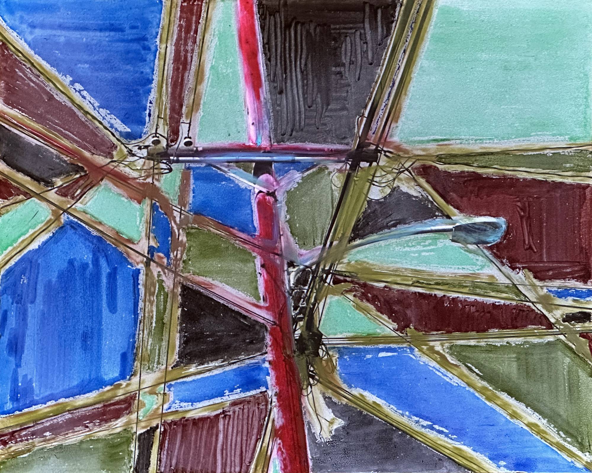 Acrylic, Ink, Pastel on Resin Coated Silver Print