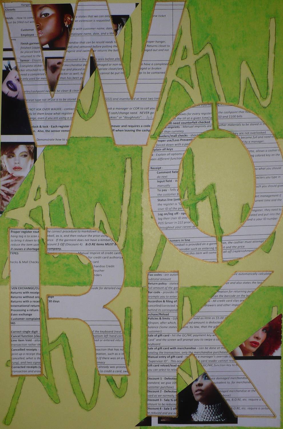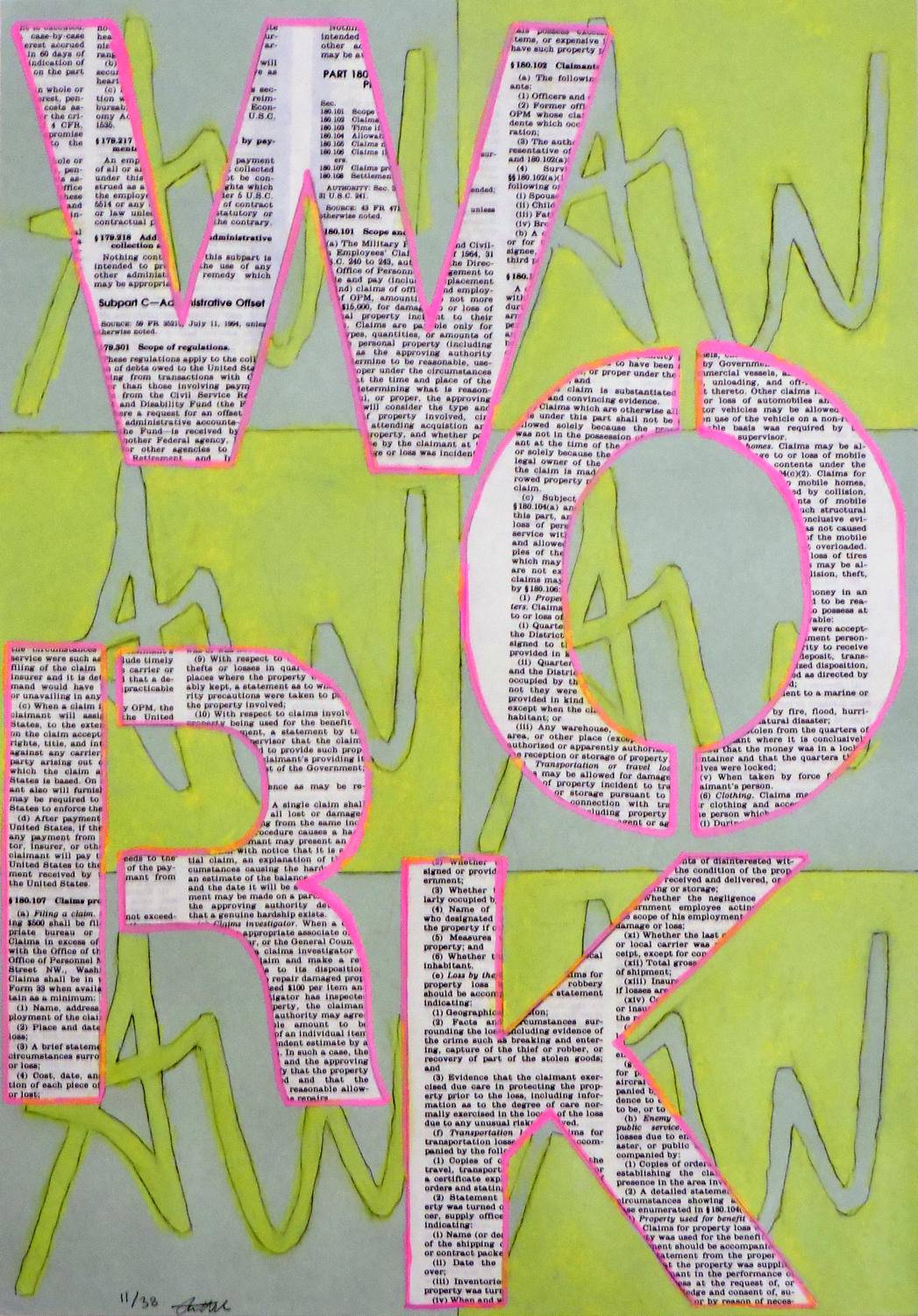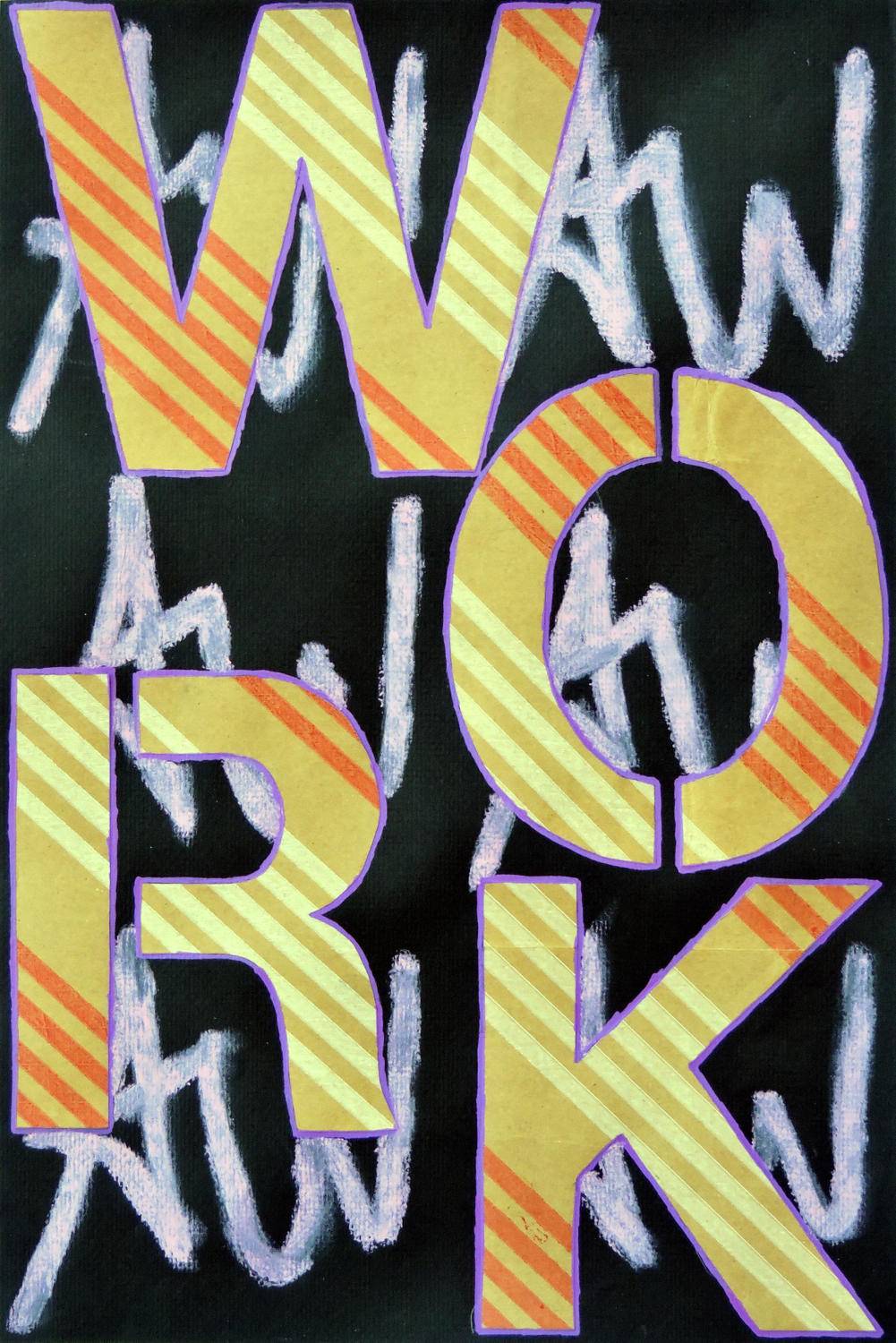 Work on Paper is an ongoing project comprising pieces that incorporate collage and pastel in a repetitious series commenting on the artist's role in society, the function of labor within the gap between tedium and intrinsic motivation, and the attachment of identity to how we sustain our livelihoods.